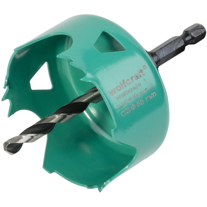 Questa sega a tazza in acciaio al carbonio con mandrino è particolarmente idonea per l'uso su legno e pannelli di costruzioni a secco (ad es. cartongesso e OSB) ed è disponibile in diversi diametri (25 - 68 mm). La profondità di taglio di 30 mm consente di forare anche pareti in cartongesso a doppio pannello. Il codolo esagonale consente di bloccarla rapidamente nel mandrino del trapano o dell'avvitatore a batteria. La sega a tazza in acciaio al carbonio può inoltre essere impiegata su utensili con attacco da 1/4 o su portainserti. Una punta di centraggio (Ø 6 mm) di 70 mm di lunghezza facilita il posizionamento esatto del foro. I gruppi da 3 denti si rivelano utili soprattutto durante l'impiego con utensili a batteria poco potenti, poiché presentano una resistenza di foratura molto ridotta. Al contempo, la geometria dei denti consente di realizzare tagli precisi e netti. Grazie alla posizione dei denti, durante la trapanatura la carota si riduce, in modo da poter essere estratta e