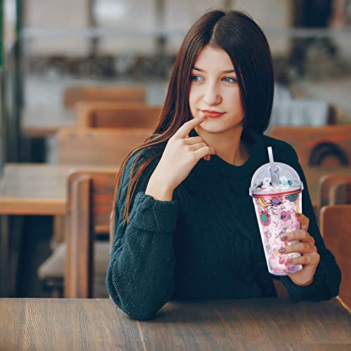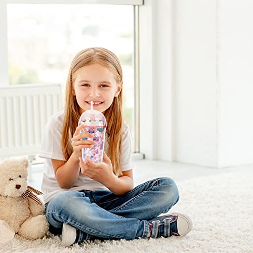 Tazza d'acqua 450 ml con Cannuccia e Coperchio, Bicchiere d'acqua in Plastica Doppia Parete, Bottiglia d'acqua per Bambini a Prova di Perdite per Adulti, Scuola, Ufficio, Viaggi, Ciclismo (Rosa)