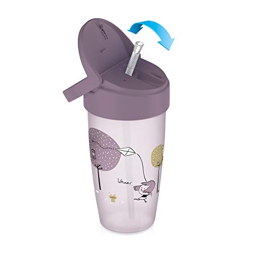 LOVI tazza per bambini, 14+ mesi, Coperchio con chiusura ad avvitamento e cannuccia morbida, A prova di perdite, Senza BPA, 350ml, Rosa, 1 pezzo