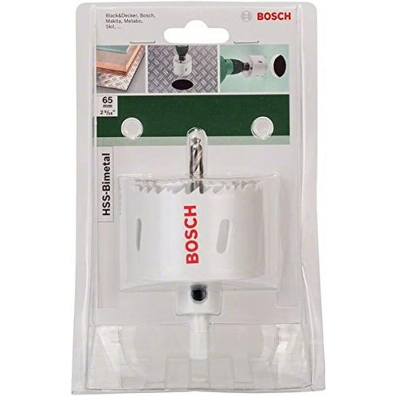 BOSCH - SEGA A TAZZA BIMETALLICA IN HSS 65MM Adatto a tutte le marche Utilizzare per alluminio legato e non legato, metalli non ferrosi, caste stell e ghisa, vetro acrilico, legno, plastica Migliori prestazioni nella velocità di taglio e nel tempo di vita Sistema in una parte per una corsa precisa e regolare e con basse vibrazioni. Include punta da trapano pilota
