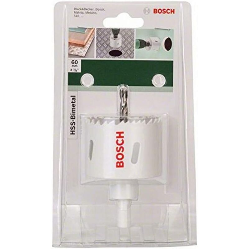 BOSCH - SEGA A TAZZA BIMETALLICA IN HSS 60MM Dimensione testa 60 mm Adatto a tutte le marche Utilizzare per alluminio legato e non legato, metalli non ferrosi, caste stell e ghisa, vetro acrilico, legno, plastica Migliori prestazioni nella velocità di taglio e nel tempo di vita Sistema in una parte per una corsa precisa e regolare e con basse vibrazioni. Include punta da trapano pilota