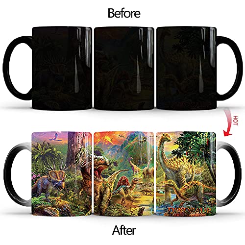 Tazza Cambia Colore con Calore, Tazza Magica Ceramica termosensibile Coffee Tea Cup 300 ml (dinosauro)
