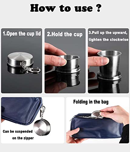 【Materiale superiore】 La tazza pieghevole in acciaio inossidabile è realizzata in acciaio inossidabile di qualità superiore, resistente, resistente all'usura, resistente alle cadute, sicura e sana, durevole e facile da pulire.