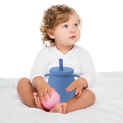 Tazza di Cannuccia in Silicone per Bambini, a Prova di Perdite e a Prova di Caduta Babe Learning Drink Cup Manici Antiscivolo per Bambini Addestramento a Prova di Fuoriuscite con (Blu scuro)