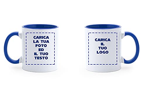 TAZZA IN CERAMICA CON INTERNO BLU Personalizzata con Foto Stampata PER MICROONDE DA 325 ML PER BEVANDE CALDE o FREDDE