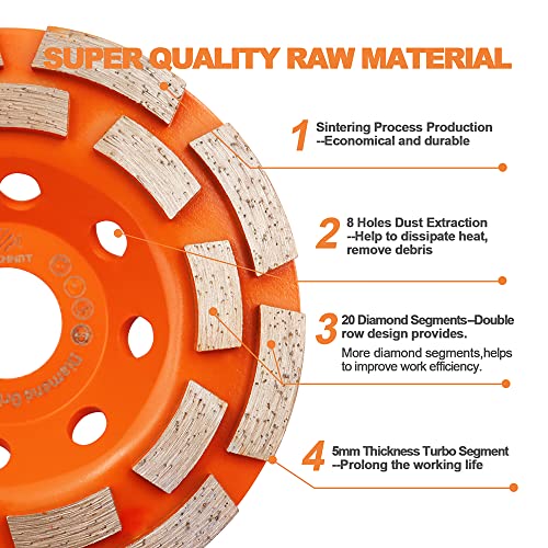 Mola a Tazza Diamantata 125mm- BRSCHNITT Disco Abrasivo Diamantato per Cemento, Calcestruzzo, Pietra, Muratura, Mattoni.