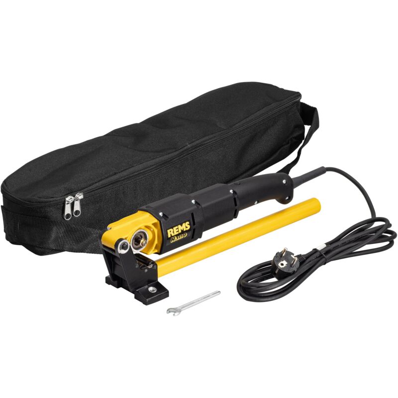 Tagliatubi Nano - Struttura in alluminio robusta e priva di torsioni per un taglio ad angolo retto - Rulli di contropressione robusti e appositamente disposti in tubo d'acciaio temprato di precisione - Per un taglio facile e veloce senza bave esterne dei tubi dei sistemi di pressfitting in acciaio inox. acciaio al carbonio. Rame e tubi compositi - Per il taglio di tubi in acciaio al carbonio. Rame e tubi compositi. Per il commercio e l'industria In dotazione: Macchina motrice. Chiave aperta SW 8. Borsa di trasporto. senza rotella di taglio.