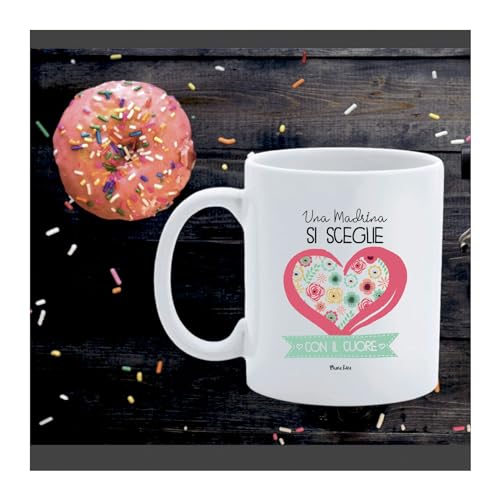 Tazza Madrina Cresima Battesimo scritta Idea Regalo compleanno collega Natale Festa anniversario (Tazza Cuore)