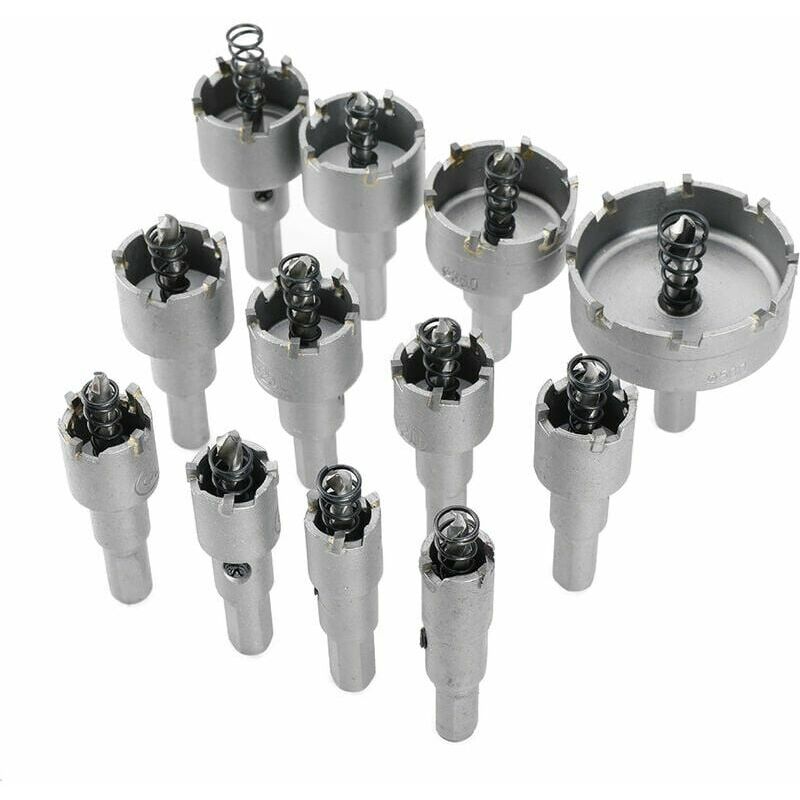 Specifiche: Materiale: lega dura Diametro: 15mm - 50mm (15,16,18,20,21,22,25,26,28,30,35, 50) Diametro dell'asta: 9,35 mm (±0,2 mm) Piastra in acciaio inossidabile: 2-5 mm di spessore adatto, entro 15 mm piastra metallica Buono: alluminio, acciaio, legno, plastica, Placoplâtre, acciaio inossidabile, ecc. utilizzato nell'operazione deve passare, quindi l'apertura e la chiusura per ridurne la velocità, ampiamente utilizzato in combinazione con vari tipi di fori di perforazione sul banco. 2, chip liscio, tagliente, usura e altri vantaggi. Confezione: 12 fori - (insieme)