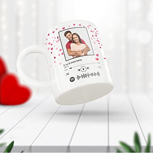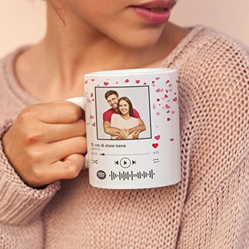 Tazza Personalizzata con Foto e Codice Spotify Canzone Preferita, Regali Tazza per San Valentino, Regalo Anniversario per Lui Lei, Tazze Personalizzabili Tazza con Foto Personalizzata Idea Regalo