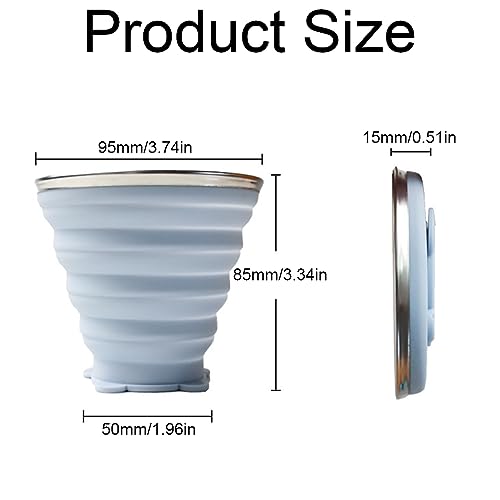 Materiale: la tazza pieghevole è realizzata in silicone con un'apertura in acciaio inossidabile e un coperchio in plastica. Non tossico, nessun odore, nessuna ruggine, nessuno sbiadimento, facile da pulire