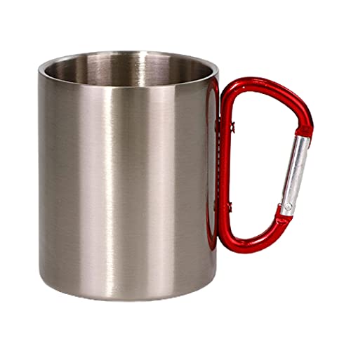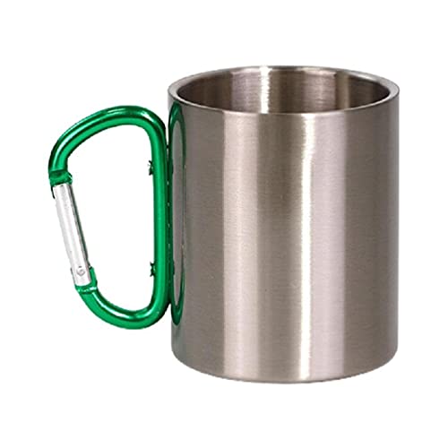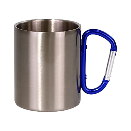 Tazza portatile da viaggio in acciaio inox personalizzata da 300 ml con moschettone a D manico acqua tazza da tè e caffè per sport all'aria aperta, campeggio, escursionismo, casa, ufficio, viaggio in