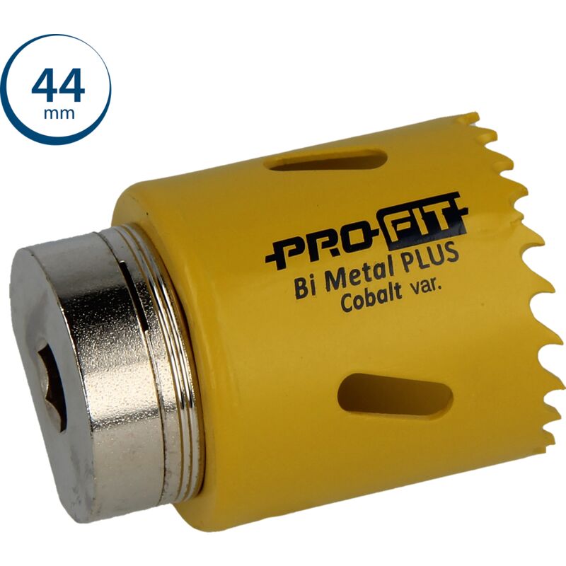Sega a tazza BiMetal 'PLUS' 44 mm - 1 3/ 4 passo variabile. Speciale geometria del dente per un migliore scarico. Con Sistema intergrato e brevettato Click & Drill®. Per utilizzo nel acciaio, acciaio inossidabile, alluminio, rame e altro metallo. Profondità di taglio mm. 38 Attacco esagono mm.10 Diametro mm. 44 Confezioni di imballo: 1