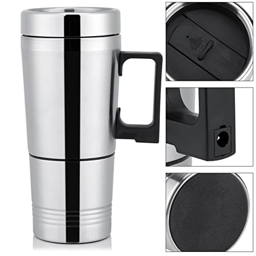Tazza Riscaldante Auto, Bollitore Elettrico Portatile Mini Tazza Riscaldamento Viaggio in Acciaio Inossidabile Cup Termica Riscaldata Isolata Caffè Intelligente per Acqua Tè Latte Caffè(Argento 24V)