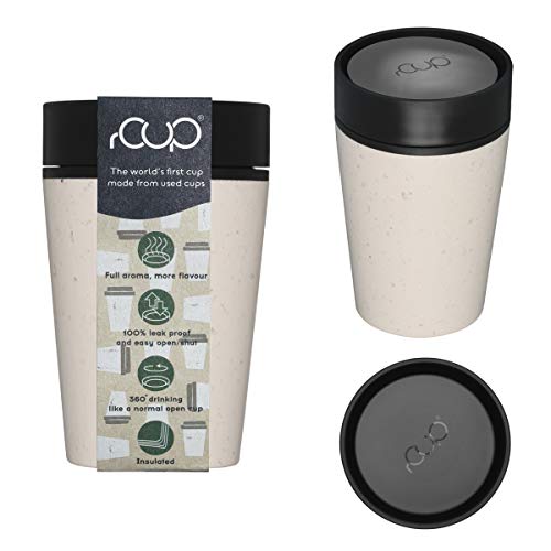 RCUP - Tazza riutilizzabile al mondo, realizzata in bicchieri riciclati monouso (crema - nero 227 ml)