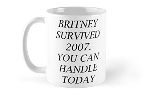 Tazza con scritta "Britney Survived 2007. You can handle today." in ceramica, bianca, 325 ml