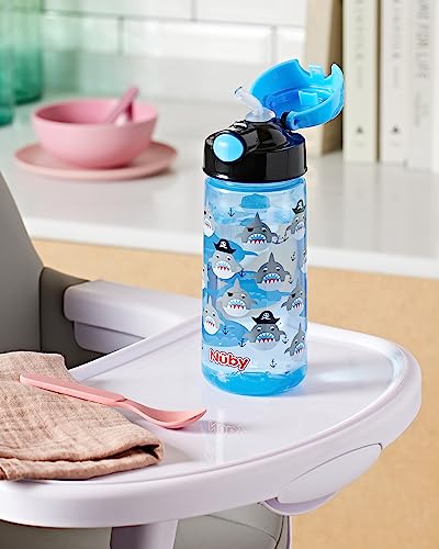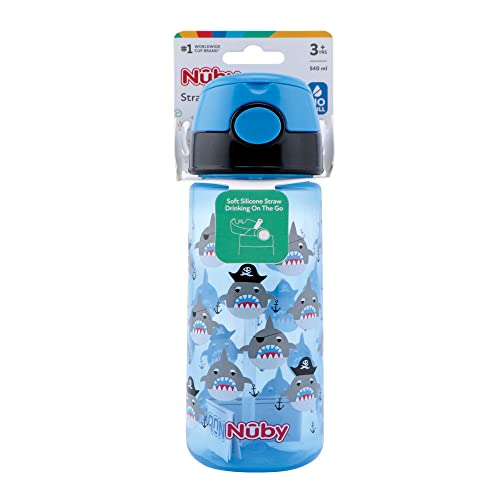 Nûby - Tazza in Silicone a pressione con cannuccia morbida - Blu - 540ml - 3 anni+