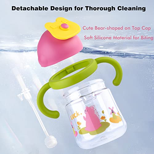 Tazza Sippy per Baby 6+Mesi, Tazza senza Antigoccia per bambini, Tazza di paglia per bambini con maniglie, Tazza morbida a prova di perdite 240ml, senza BPA (Green Bear)