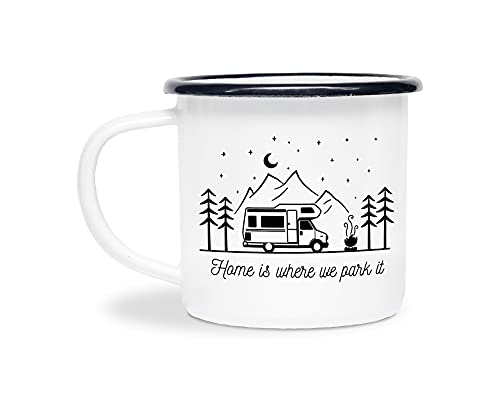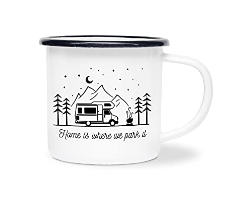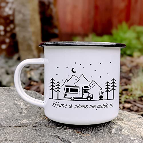 Tazza smaltata Sprinter Van camper, Home is where we park it, campeggio, happy camper, roulotte, tende, escursioni, regalo di compleanno (camper nero)