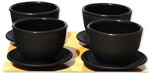Tazza da tè e sottobicchiere rotondo in ghisa, colore nero, 4 pezzi