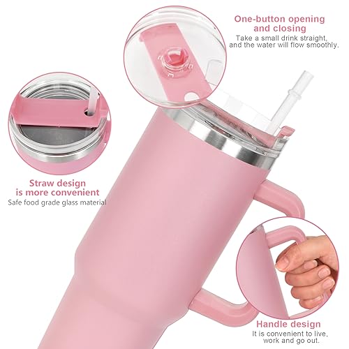 Tazza Termica da Viaggio con Manico e Cannuccia, 1200mL Termos a Doppia Caffè Isolato, Tazza da Viaggio per Auto,Tazza Isolata Sottovuoto, Tazza da Caffè da Viaggio, Fredde Isolate Sottovuoto (Rosa)