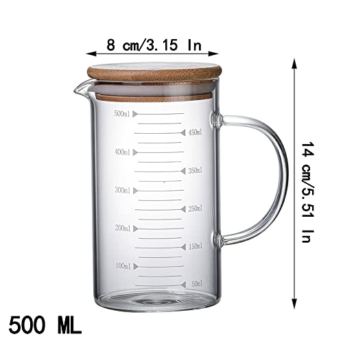 Tazza In Vetro Resistente Al Calore, Misurino di Vetro, Bicchiere di Vetro Resistente Al Calore, Tazza Acqua Fredda Con Coperchio, per Succhi, Latte e Prodotti da Forno (500 ML)