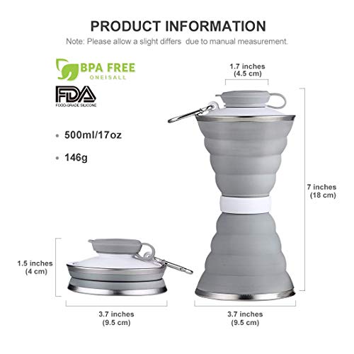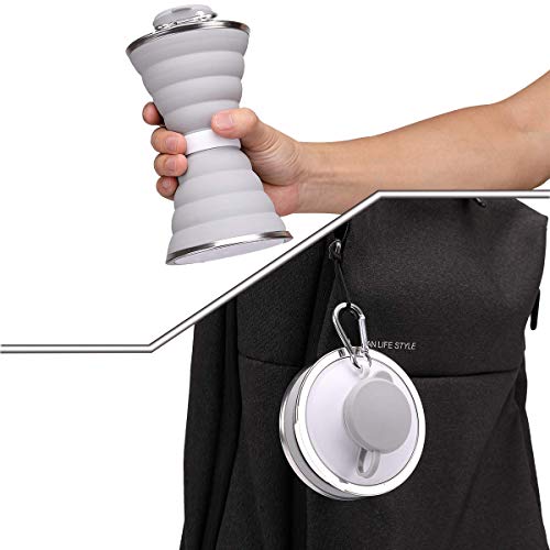 Tazza da viaggio pieghevole in silicone, a prova di perdite Tazza con coperchio, portatile Tazza espandibile con moschettone, per ufficio, campeggio, picnic, escursionismo, viaggi, ciclismo, grigio