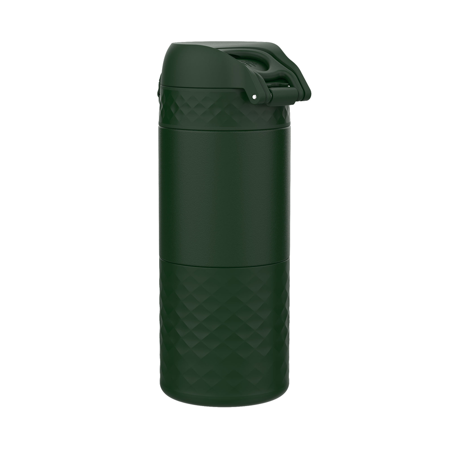 Dettagli del prodotto: Design: Verde scuro Capacità di riempimento: 360 ml Tazza da viaggio a prova di fuoriuscita Il triplo meccanismo di bloccaggio assicura che non si verifichino fuoriuscite, anche quando la tazza è in una borsa. Il flusso fluido e affidabile del liquido esalta i sapori e rende il bere un'esperienza deliziosa senza fuoriuscite. Il coperchio mantiene il bordo libero da detriti e si apre a 240°, in modo da non essere d'intralcio durante l'uso. Il coperchio può essere ripiegato completamente all'indietro in modo da poter guardare tranquillamente in avanti mentre si beve e la pratica maniglia per il trasporto si aggancia al coperchio stesso Il profilo del coperchio ne impedisce la caduta e facilita la rimozione della bottiglia da una borsa. Realizzata in acciaio inossidabile riciclabile all'infinito e rifinita con una resistente verniciatura a polvere priva di solventi L'ampio bordo, sagomato e curvato per il massimo comfort, unito a un flusso fluido del liquido, è sicuro per il sorseggio, rilassa mentre si beve, esalta il sapore e aiuta a prevenire le fuoriuscite Altezza 19 cm Adatto per bevande da -5°C a 95°C Non congelare, bollire o mettere in microonde la bottiglia piena Non adatto a bevande gassate o a liquidi non bevibili Istruzioni per la conservazione e la cura: Lavare a mano o in lavastoviglie in acqua fredda. Non lavare in lavastoviglie a temperature molto elevate. Sciacquare il flacone e il tappo con acqua fredda prima dell'uso. Dopo l'uso, risciacquare solo con acqua tiepida e detersivo per piatti. Non strofinare con spazzole o detergenti abrasivi. Lasciare asciugare bene all'aria con il tappo rimosso prima di riporlo. La fornitura comprende 1 x tazza da viaggio ion8 da 360 ml