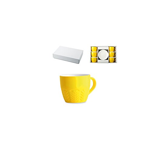 6 tazze caff new bone china decoro in rilievo giallo cc130