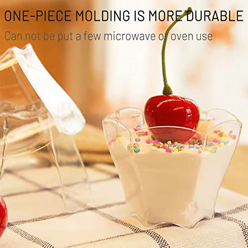 2. 【Design Unico】 Questa mini tazza da dessert è elegante e carina con un design unico a forma di fiore. Le bicchierini da dessert trasparente sono un ottimo modo per mostrare la forma e il colore del cibo, e la forma unica cattura l'attenzione e aggiunge un tocco di colore alla tua festa.
