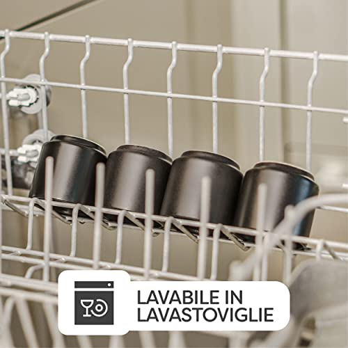 Set di 4 Tazze da Espresso in Ceramica Nera - Design Impilabile - Pareti Spesse - Lavabile in Lavastoviglie - 70 ml
