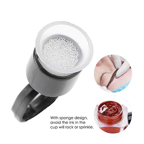 Tazze di inchiostro per tatuaggio 2 colori Anello monouso Anello per contenitore di inchiostro per pigmenti Contenitore con supporto per pigmenti in spugna Kit di tatuaggi permanenti(Nero)