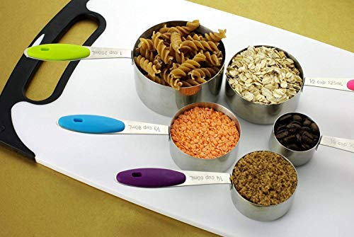 Il set include misurini di diverse dimensioni: 1/8 tazza (30 ml), 1/4 tazza (60 ml), 1/3 tazza (80 ml), 1/2 tazza (125 ml) e 1 tazza (250 ml).