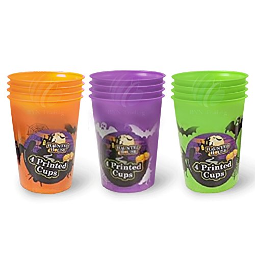 Tazze in Plastica a Tema Casa di Halloween, Resistenti, Lavabili, Riutilizzabili. Disponibili in 3 Diversi Colori, Capacità 230 ml (8 Oz) - Pacco da 12