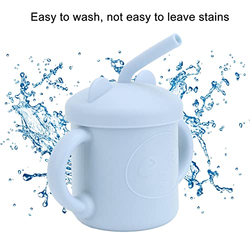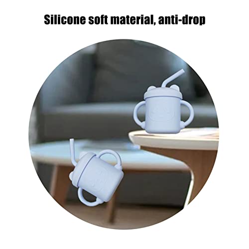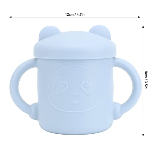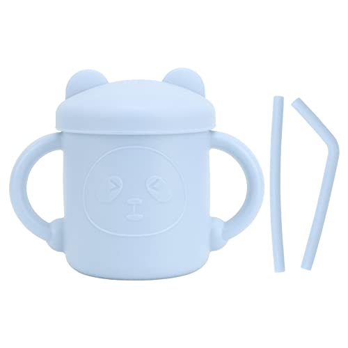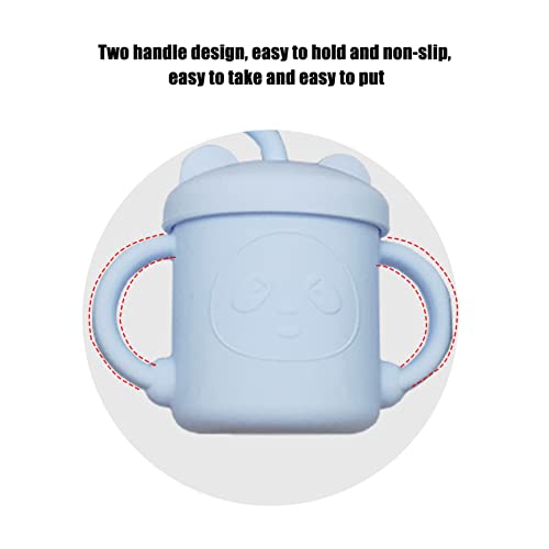 Mini Tazze in Silicone con Cannuccia e Coperchio, 4 Pezzi Tazza Sippy in Silicone Modello Panda Tazza da Allenamento per Apprendimento del Bambino Tazza Sippy in Silicone Resistente Alle Gocce(Blu)