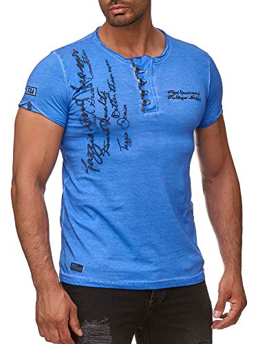 Tazzio 4050-1 - Maglietta da uomo a maniche corte con elegante chiusura a barra, scollo a V Blu scuro S