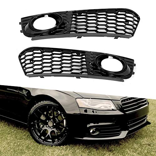 Tbest Cosostituzione pertura fendinebbia 1 paio paraurti anteriore griglia fendinebbia fendinebbia telaio griglia griglia set destro e sinistro sostituzione per A4 B8 2009 2011(Nero)