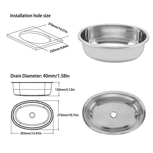 Grande acità: il lavandino può essere utilizzato per lavare tutti i tipi di frutta e verdura o piatti, puoi goderti facilmente frutta e verdura pulita anche quando viaggi in natura. Dimensioni: il lavabo ovale è lungo 393 mm, largo 273 mm, profondo 130 mm all'interno, ha un diametro del foro di scarico di 40 mm e ha una dimensione di installazione di 370x250 mm.