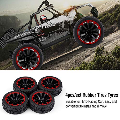 Tbest 4 Pezzi Pneumatici RC, Cerchi Fuoristrada Cerchioni Ruote cingolate in Gomma Pneumatici per RC 1:10 Parte Auto(10 Fori) Gomme Pneumatici per Auto Rc 1/10
