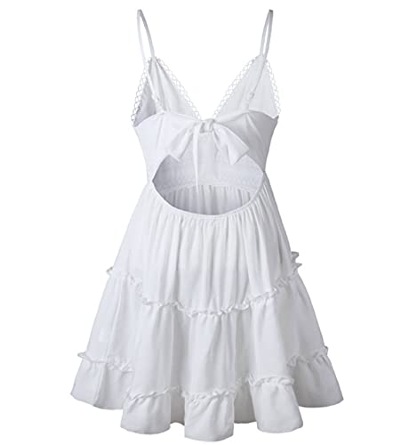 - 【Stella lucente】: senza maniche, volant, mini, scollo a V, linea ad A, senza schienale, fiocco, con il design in pizzo. Questo vestito elegante e carino è un must per ogni guardaroba, un vestito indispensabile per il tuo guardaroba, devi essere la stella splendente quando lo vesti per la spiaggia.