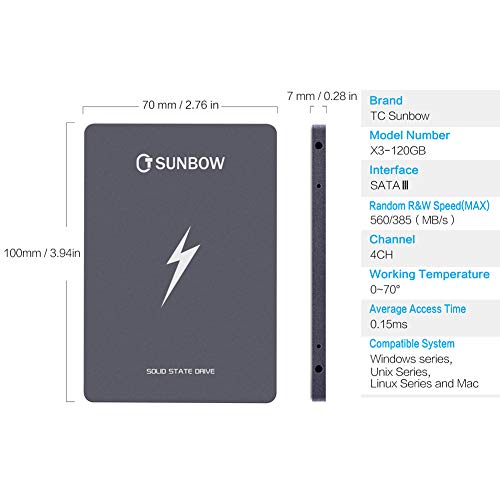 TCSunBow 120GB 128GB 2.5 pollici SSD con 128M di memoria interna SATAIII 6GB / s Solid State Drive per PC Desktop Tablet PC (X3 120GB)