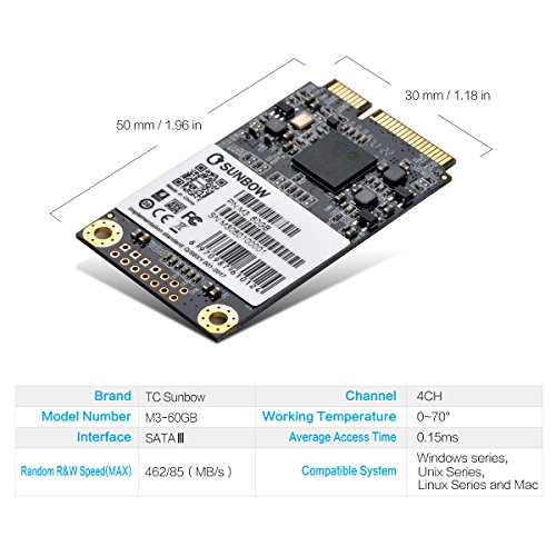 TCSUNBOW mSATA Mini PCIe 60GB 64GB Series SSD Solid State Drive (30 * 50 mm)
