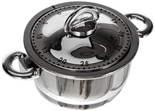 ADE TD1608 Timer da Cucina Meccanico a Forma di Pentola. Realizzato in Plastica Abs e Acciaio Inox. Segnale Acustico Dopo il Timeout. Graduazione Circolare di 59 Minuti.