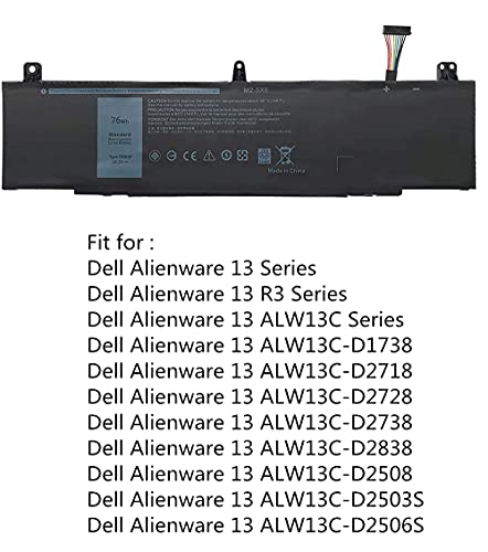 ASKC TDW5P Laptop Batteria per Dell Alienware 13 R3 ALW13C ALW13C-D1738 D2718 D2728 D2738 D2838 D2508 D2503S D2506S D2715S Series V9XD7 4RRR3 JFWX7 0JFWX7 15.2V 76Wh