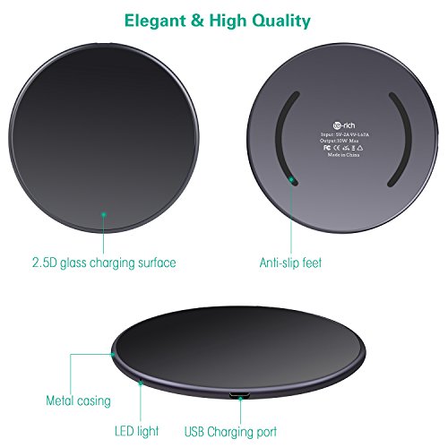 Te-Rich - Caricabatterie wireless veloce, per Samsung Galaxy Note 8/S8/S8 Plus/S7 Edge/S7/S6 Edge Plus/Note 5, ricarica standard per iPhone X/iPhone 8