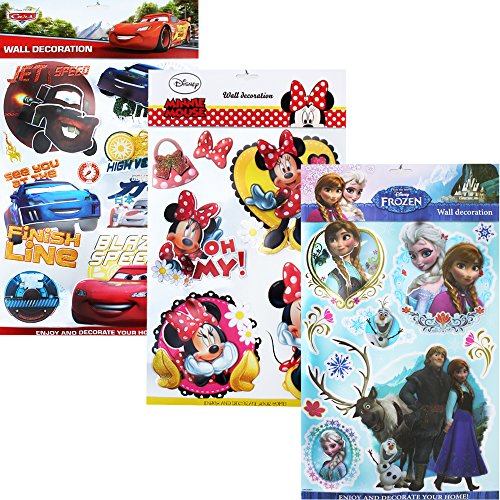 TE-Trend Disney 3D Poster Disney Adesivo Murale Adesivo da Parete Bambina Cameretta dei Bambini Decorazione Multicolore Frozen Cars Minni Minnie - 2 Disney Cars