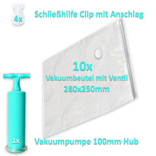 I sacchetti per sottovuoto Ziplock vengono forniti 10 pezzi da 280 x 250 mm. Inoltre, il pacchetto di conservazione freschezza include 4 clip di chiusura per una chiusura sicura delle chiusure a zip.