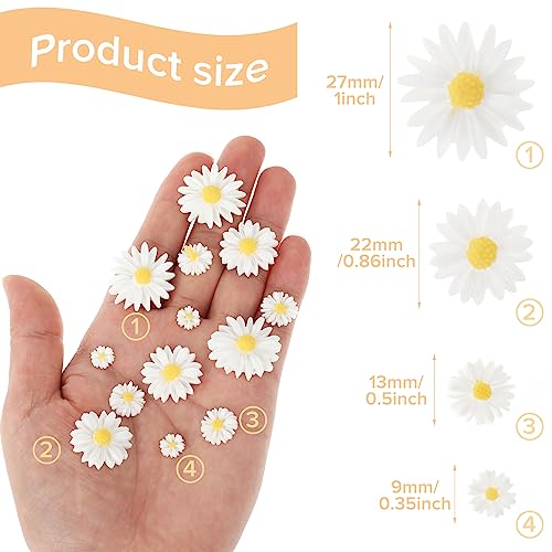 Aspetto bello e vivace: la margherita decorativa per compleanno, margherita in resina, ciondoli flatback in resina, ciondoli a margherita, può essere vivace, con petali bianchi e stami gialli, i fiori sono ben definiti in forma e sembrano delicati e belli, con colori vivaci e sembrano eleganti e vivaci, che possono portare più atmosfera naturale e divertimento. margherite artificiali, fiori decorativi, piccoli fiori artificiali.