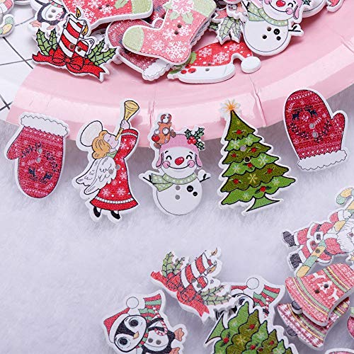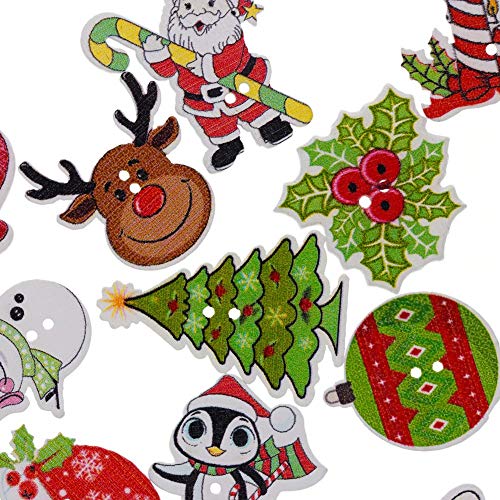 Teabelle Bottoni in legno a 2 fori per decorazioni fai-da-te, Decorativi Forma di Albero di Natale per cucito e scrapbooking, 50 pezzi