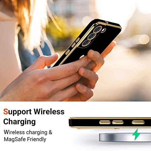 Teageo Cover per Samsung S22 5G, Cellulare da Donna a Forma di Cuore Aspetto Galvanico Morbido TPU Fotocamera Protezione Antigraffio Antiurto Custodia Case per Samsung S22 5G-Nero